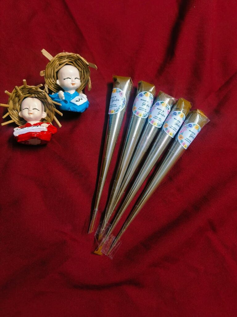 Our mehndi cones are made using 100% organic ingredients and are completely free from harmful chemicals. Each cone is freshly prepared to give a rich, natural color while being gentle and safe for the skin. To ensure the best quality and freshness, please place your order at least 2 days in advance.